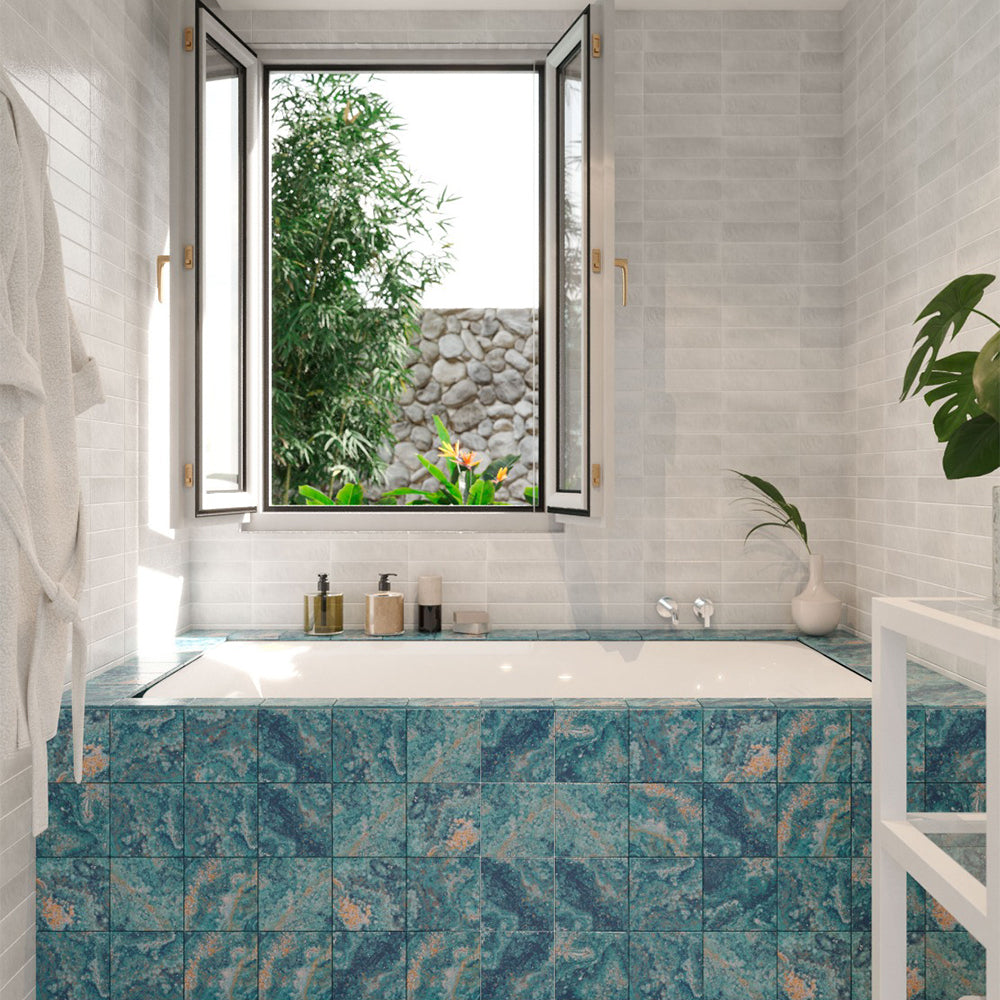 Cada azulejo puede presentar ligeras variaciones de tono y formato, características propias de su proceso de producción que realzan su apariencia única. Para un mejor resultado visual, se recomienda mezclar piezas de distintas cajas durante la instalación.